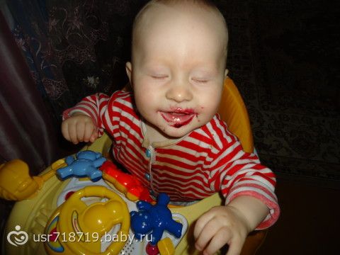 Варенье черничное немножко дала попробовать вот весь и измазался....