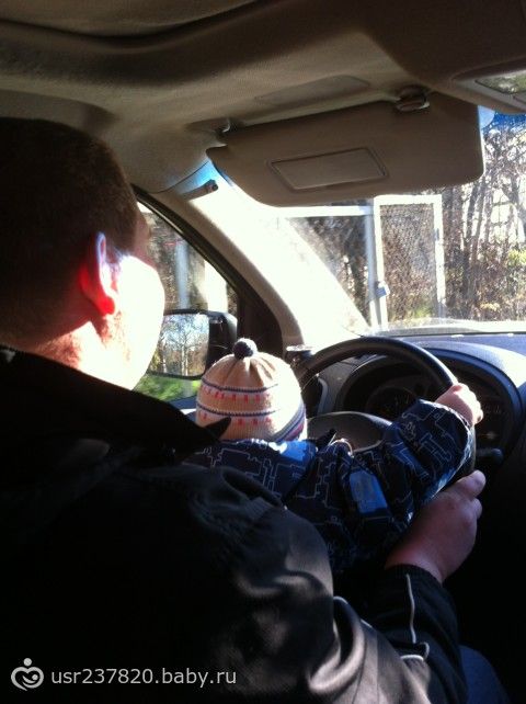 Рулит вместе с папой по проселку.