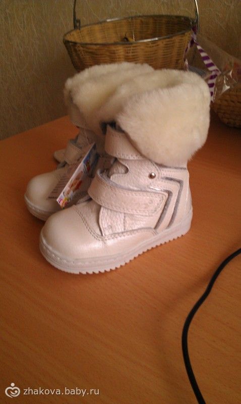 мы купили своей Доче на днях на резиновой подошве, внутри цигейка, снаружи непромокаемая ткань типа незнаю ну в общем все знают какого плана. померили кожаные сапожки зимние, но Доче в них очень тяжело оказалось шагать. Так что выбор пал на эти сапожки, главное что внутри цигейка натуральная и ребенку не тяжело в них ходить! отдали 1,500 руб.