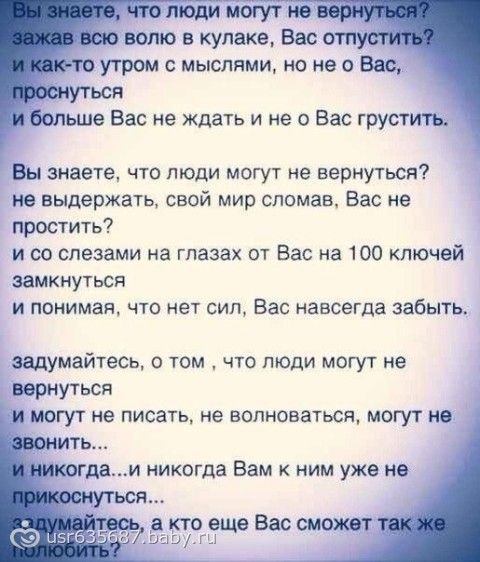 Да знаю, дорожу, а если и уходят, то не держу, значит им плохо.зачем еще больше причинять боль?