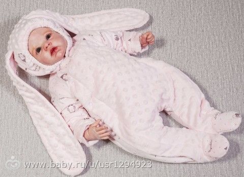 вот такой милый ушастик.есть голубой цвет и молочныйкомбез не знаю. мы конверт-одеялко покупали