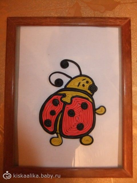 Лепим с Лиз-ой из пластилина, вот эту божью коровку с ней на днях сделали(в дочкиных ручках катали колбаски тоненькие, а выкладывала рисунок я сама)