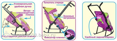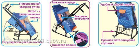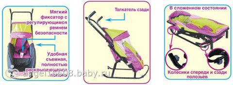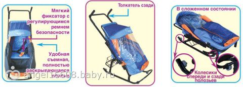 Комфортные и компактные санки для малышей до четырех лет с чехлом от мороза, снега и ветра. Нарядный вид, гарантированная безопасность, легкий ход и малый вес – что еще нужно малышу и его маме для веселых и полезных прогулок в зимнее время?