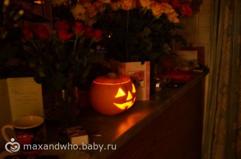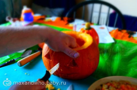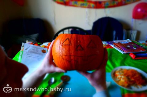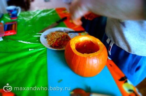 Макс только мысленно в тыкве, а глазами в мультике, на тыквы он уже насмотрелся говорит, оценит только результат:)))