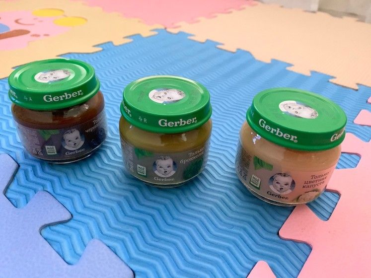 Начинали кушать: цветную капусту, брокколи, кабачки. Выбирала долго какую фирму покупать. Как то на подсознательном уровне остановилась на Гербер. По консистенции все пюре жидкие, т.е. ими не возможно подавиться, пахнут натурально, кабачок не особо, ну а капуста настоящей цветной капустой-этот аромат ни с чем не перепутать) Если честно, думала что все пюре такие-натурально пахнущие, оптимальной консистенции. Ах как я ошибалась( Купила как то другую марку-вода водой, пить нужно, а не есть. В итоге вернулись все к тому же гербер. Особенно мне нравилось, что прозрачная этикетка, т.е. видно все содержимое(цвет, консистенцию)