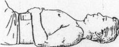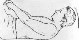Упражнение 19. Исходное положение: лежа на спине, ноги несколько согнуты. Правую руку вытянуть вперед, положив при этом кисть на левое колено.