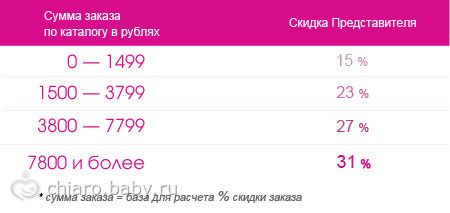 выше написала от 15% до 31% в зависимости от суммы заказа. если нужно, могу более точно найти по суммам от скольки до скольки какая скидка.