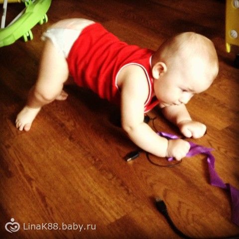 Мы умеем очень уверенно сидим и садимся....3 дня ползает активно)) как хвостик за мной))) носится в ходунках по всей квартире))