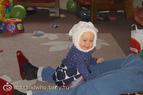 заяц супер, прям расцеловать охота, какой папочка молодец)))прикольная штукенция для ходьбы и как у нее, получается?)как же она становится все сильнее похожа на Макса)