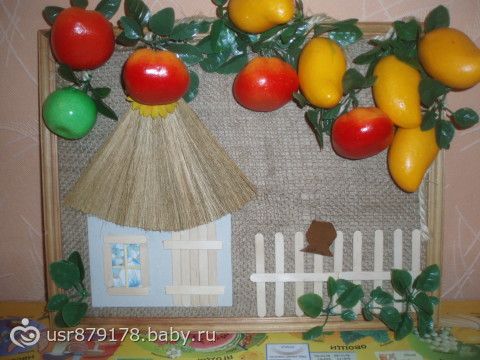 вот такие панно я себе сделала на кухню, первое — хуторок ( овощное)