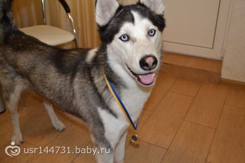 Сегодня наша собака первый раз была на выставке!!! Получил оценку отлично, правда призовых мест не занял) Но ему пока что только 11 мес, так что все достижения у нас впереди))) Дали диплом и медальку))) А вот и он))
