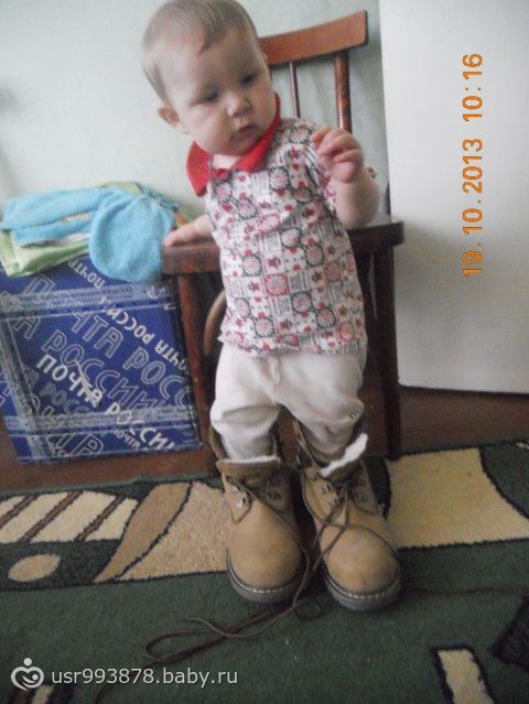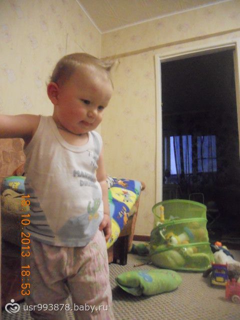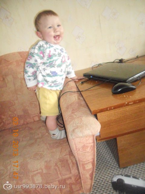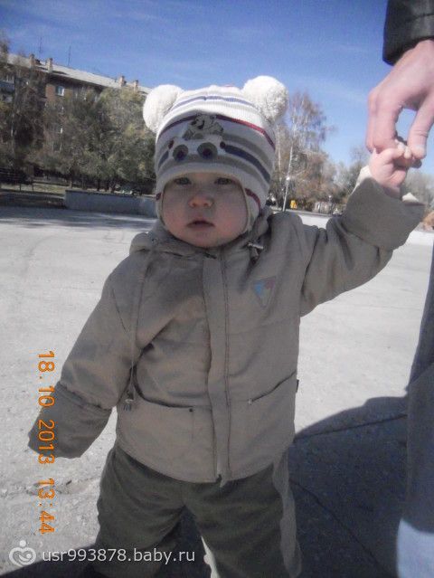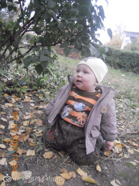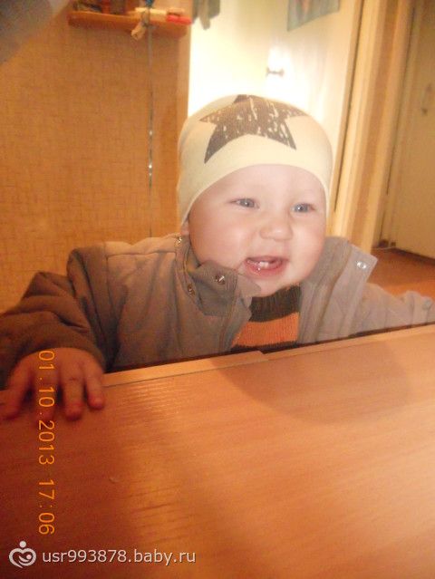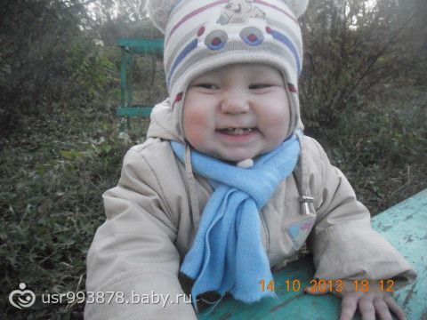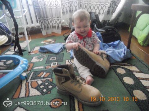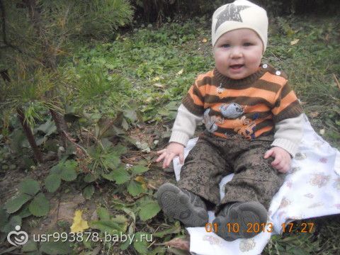 Правда 9 месяцев нам еще 19 исполнилось, но добралась до сюда только сегодня. Весим мы 10800(+500г) рост 74(+1) думала больше вырастет.Кушаем уже все подряд. Но больше всего любим колбаску и сырный батон. Очень нравятся цукаты. У нас 4 зуба.Сынок стал очень плохо спать, так как лезут еще сразу 4 зуба. Прошли стоматолога, сдали анализы, все хорошо. И еще ходили к хирургу, нам ставили водянку яичек, но к счастью все прошло. Папа обожает своего карапузика, да и сынок к нему больше тянется. Если стоит выбор к кому пойти, он к папе отправится. Кстати о ходьбе, Мы уже прекрасно ходим, иногда даже пытается бежать. Научился вставать с пола без опоры, так что мы уже совсем самостоятельные. Может наклонится поднять что то с пола и дальше идти, кушает на ходу. Бродит уже по всему дому, раньше только по залу ходил. Теперь вообще ничего не могу найти, сынок может унести вещь в другую комнату, а я потом разыскиваю. Любим гулять, но больше стало нравится ходить на улице, чем сидеть в коляске. Правда на улице еще держится за руку, в одежде не удобно, но иногда отпускает руку. Обожает играть своими ботинками, растёгивать липучки. Кстати, кто что на зиму берет на ноги деткам? Мы взяли ботиночки на войлоке, но думаю еще валеночки взять. Как у вас дела, что новенького?