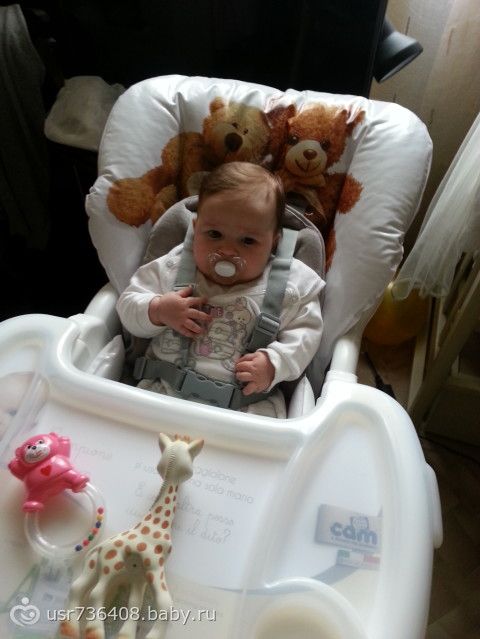 Вчера ездили выбирать стульчик для нашей самой маленькой Ксении!!! Много посмотрели, мучались с выбором- хотелось что-нибудь не дорогое и чтобы можно было уже сейчас в нём кушать( мы на ГВ, но приком уже вводим потихоньку)… Остановились на итальянском Cam!!! Вроде и по отзывам не плохой и складывается… он от 6 месяцев, но мы купили вставку к нему и получается ребёнок в нём почти лежит. Мне интересно у кого такой же- как нормально в нём ребёнку, удобен или вообще не нужны эти стульчики для кормления: мои старшие не сидели((( но у нас тогда совсем простой был...