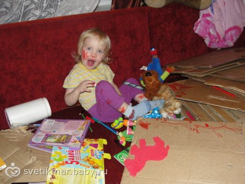 А переезд тем временем набирает обороты… Чем занят ребенок пока мама с папой разбирают мебель? Ну, конечно, помогает!