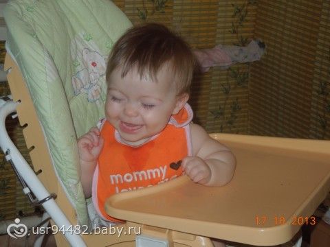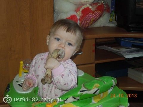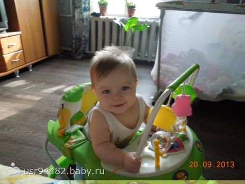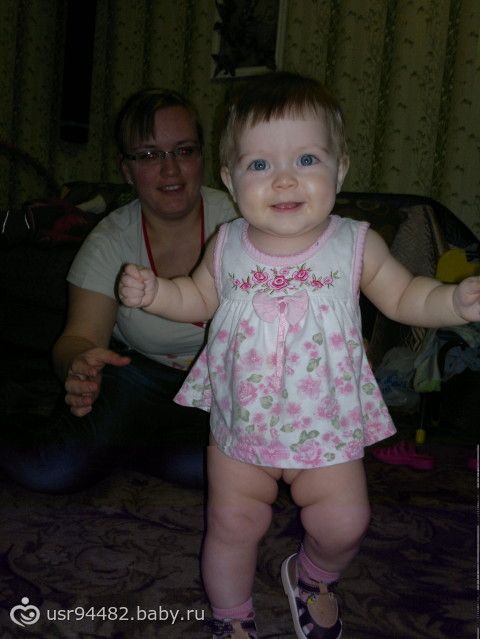 Ходим по-маленьку иногда, сильно не нагружаю позвоночник, всему свое время. А еще у нас 6 зубиков, 2 внизу и 4 наверху. Очень любит слушать музыку, прямо в ладошки хлопает, когда песенка нравится. Ну, в принципе, все, может что-то и забыла написать.