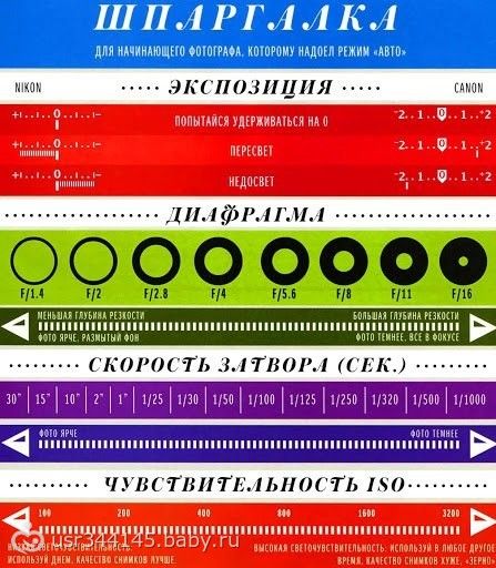 Полезные таблицы по ручным настройкам 28 октября 2013 17:05 Комментарии Пожалуйста, будьте вежливы и доброжелательны к другим мамам и соблюдайте правила сообщества ПожаловатьсяСкопировать ссылку Юленька Туманян Полина12 лет Кисловодск ПожаловатьсяСкопировать ссылку Юленька Туманян Полина12 лет Кисловодск Это то что нужно! ПожаловатьсяСкопировать ссылку Вера Ковалкина Мария14 летКонстантин3 года Красноармейск В ЗАКЛАДКИ!!! ПОЛЕЗНАЯ ИНФА) ТОЛЬКО ПРО ЧУВСТВИТЕЛЬНОСТЬ ИСО, НЕ ВИДНО(((( ПожаловатьсяСкопировать ссылку KuKusha Mysan13 летMysanll9 лет Москва ПожаловатьсяСкопировать ссылку ФотоШкола ооо полезно! спасибо ПожаловатьсяСкопировать ссылку ЯйкО-В-кЕдаХ Станислав12 летсупруг36 лет Жигулевск о, классно! спасибо ПожаловатьсяСкопировать ссылку ПОЛИНА КИРИЛЛ12 летУЛЬЯНА9 лет Астрахань супер спасибо! ПожаловатьсяСкопировать ссылку Наталька Лисюша13 лет Тамбов вот, может, тоже пригодится ПожаловатьсяСкопировать ссылку ОднаТакая Старшенькая13 летМладшенькая10 лет Минск А что означвют цифры внутри последней таблицы?ПожаловатьсяСкопировать ссылку ФотоШкола www.baby.ru/blogs/post/215293482-215190841/ ПожаловатьсяСкопировать ссылку Негодница Никита12 летАнна16 лет в закладки ПожаловатьсяСкопировать ссылку Стерва-на-Шпильках Юлия14 лет Ярославль кстати насчет значения экспонометра на 0. экспонометр ооочень частенько привирает. ПожаловатьсяСкопировать ссылку HappyMum Звездочка18 летМаминаРадость21 годМаминаБусинка21 годЛучикСолнца10 лет Гродно спасибо за шпаргалочки))) ПожаловатьсяСкопировать ссылку МатьДраконов Георгий13 летРуслан11 лет Армавир У меня немного отличается шкала выдержки, и еще объясните мне, 30" это длинная выдержка, а 1/1000 — это короткая, или наоборот?ПожаловатьсяСкопировать ссылку МатьДраконов Георгий13 летРуслан11 лет Армавир И еще у моего объектива диафрагма начинается с 4,5, а не с 1,4 ((( ПожаловатьсяСкопировать ссылку Марина Ковальчук Мирослава13 лет Астрахань диафрагма 1.4 это портретный объектив! ПожаловатьсяСкопировать ссылку МатьДраконов Георгий13 летРуслан11 лет Армавир Спасибо, уже догнала ))) только пришла, ходила дз делать на речку, вечером выкину, блин, я начала что то понимать, прям по полочкам все раскинулось в мозгах ))) спасибо девчонкам!!! ПожаловатьсяСкопировать ссылку МатьДраконов Георгий13 летРуслан11 лет Армавир Я уже его на новый год дедушке морозу заказала ))) ПожаловатьсяСкопировать ссылку ツТуфелька Тимур21 годМилла12 лет Алматы последнее пока непонятно)) ПожаловатьсяСкопировать ссылку Salivan Кира12 лет Харьков В закладки ПожаловатьсяСкопировать ссылку Олечка МИРОСЛАВА13 летЯРОСЛАВА12 лет Брянск отлично, все понятно, будем изучать Показать ещё12 Предыдущая статьяПравила фотошколы!Следующая статьяБыл вопрос про эту табличку