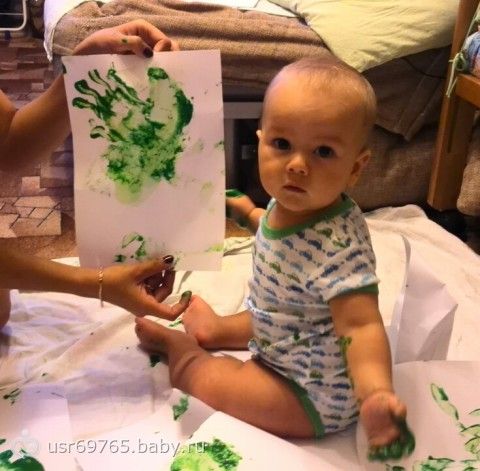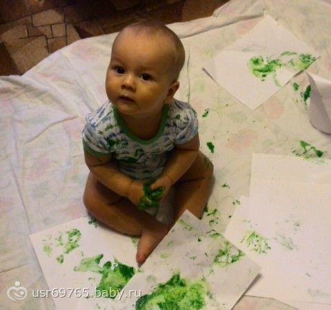 аааааа))))какой класный карапузик)))))))))супер!!! А вы посмотрите в нэте, есть видушки со спец.упражнениями с пальчиковыми красками… там для каждого возраста свои упражнения!!! до года, от года до 1,5лет, от 1,5лет до 2х и т.д.!!!