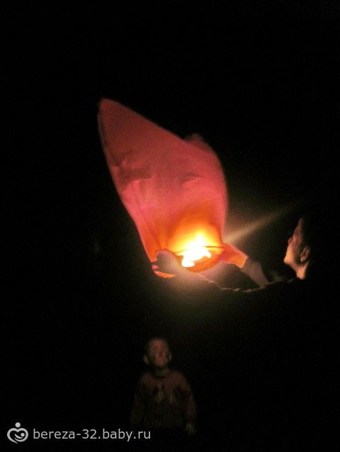 Потом пошли на улицу запускать небесный фонарик… Но так как поднялся ветер, задача вышла не из лёгких, но мы упорные, у нас получилось))