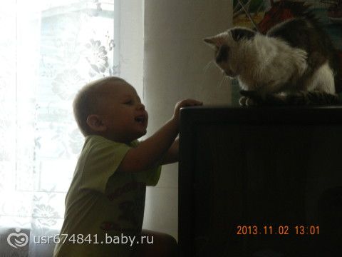 ну кошки соответственно все на улице были суткину, а еще мы научились говорить новые слова: ПОКА, НАДЯ, прям четко говорит, а не как попало, писенька(пиченька)стол, стул, мыя(мыло)вади(воды)пук(паук)игухи(игрушки)вроде все, а может и еще не помню, его уже фиг переслушаешь, песни ходит поет, танцует, ну и самые наши последние достижение это мы начали проявлять интерес к горшу, через раз но ходим, иногда пись пись просится, и мы перестали писится ночью, ну все равно одиваю мало ли, а вот мама сегодня не одивала и все норм обратно отдали нам памперс, я во общем довольна своим сыном, кстати и соску мы уже днем на сон не берем, осталась только ночь