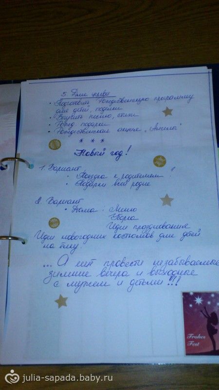 -продумать раздничную программу, тоже в двух ариантах (дома или гостях)