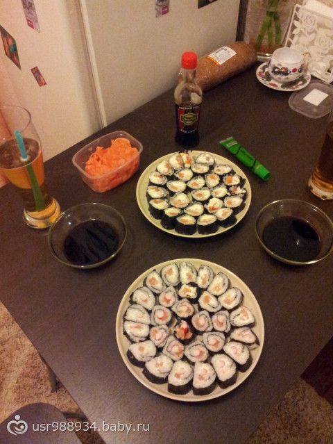 тоже нужно=) мы когда в Омске жили, я на работе была, ну захотелось мне суши=) мужу сказала, что хотела бы поесть=) приезжаю домой, часов в 12 ночи, а у меня суши, вино и свечи