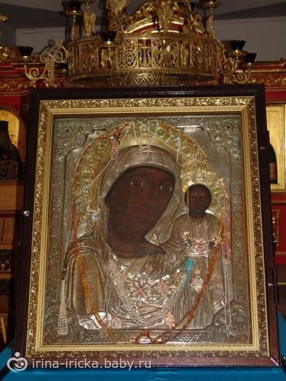 Как рассказывают старики, пристала к берегу икона Казанской Божьей Матери. Тот факт, что икона приплыла по реке, считается первым признаком чудотворности иконы. Первая церковь была построена тоже на этом месте, но сгорела до тла, на пепелище нетронутой нашли только икону Божьей Матери….