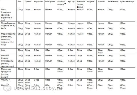 ну смотри, например ты хочешь кушать мясо, смотришь первую строку и справа налево смотришь когда и с чем можно