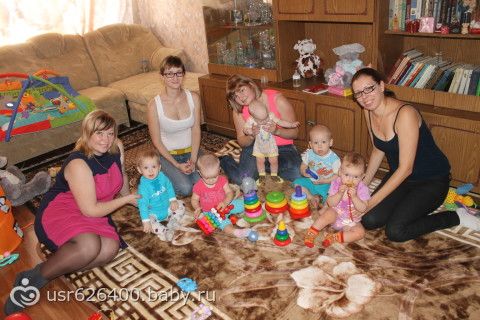 В эту пятницу уже 5 й раз будем встречаться нашим клубом, придумала это моя подруга по совместительству соседка! Встречаемся мы раз в неделю, на встречах детки общаются, играют вместе, каждую встречу кто нибудь из мам готовит небольшую обзорную тему на актуальные вопросы касающиеся воспитания и развития детей, так же есть часть в которой стараемся проводить развивающие занятия с детишками, а в остальное время мамы пью чай, дети резвятся)