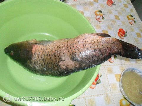 я б его с солью и ломоным соком обтерла и в духовке в фольге запекла… а так не люблю я речную и озерную рыбу слишком тиной пахнут и часто бывают очень кастлявыми