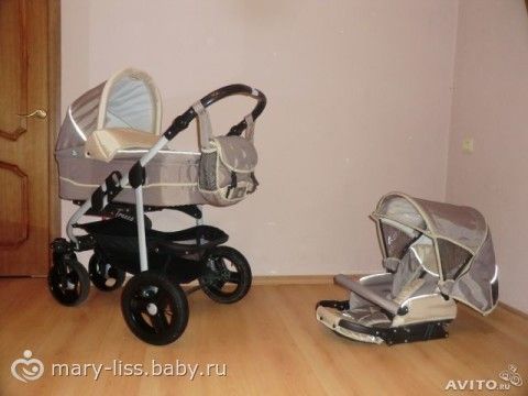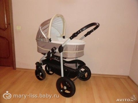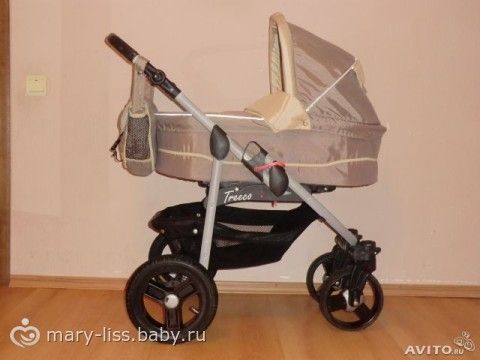 Очень легкая и маневренная. Передние колёса поворотные с фиксатором. Складывается легко и быстро. Люлька с матрасиком, подголовник регулируется. В комплекте: сумка для мамы, корзина для продуктов, дождевик, матрас, 2 накидки на ножки(на люльку и на прогулочную), подстаканник, насадки для авто кресла.