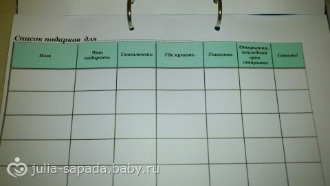 - Последняя колонка «Готово!»-отмечаем, когда подарок уже готов к вручению