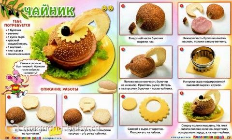 Делаем необычные бутерброды для детей (лягушка, рубашка, чайник, бабочка, кресло, павлин и др.)