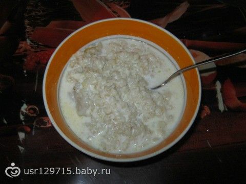 Завтрак в 9,00, овсяная каша, с небольшим содержанием молока, съели с сыном