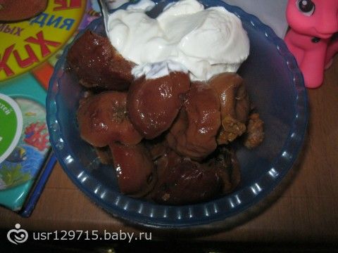 Ужин в 19,00, девочки, вы будите меня ругать, но мне жалко выбрасывать эти сухофрукты из компота. Собстно они и немного сметанки