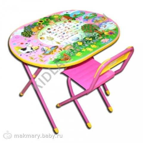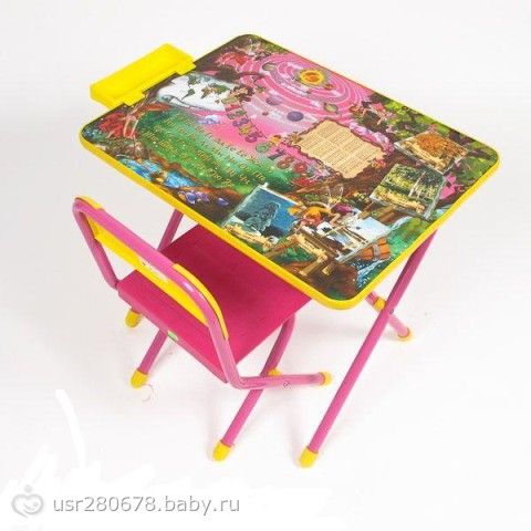 нет… у нас складной набор, столешница овальная, на ней нарисован алфавит, цифры, времена года, зверушки… доче нравится, она её разглядывает и спрашивает «а это что за буква?» «а это кто?»)))))))) в общем, ребенку угодили