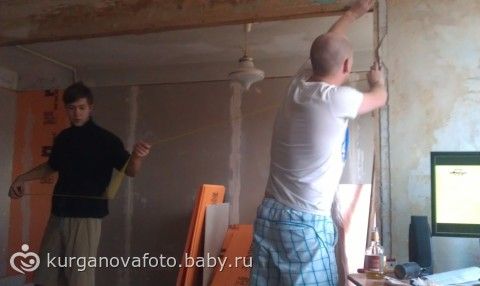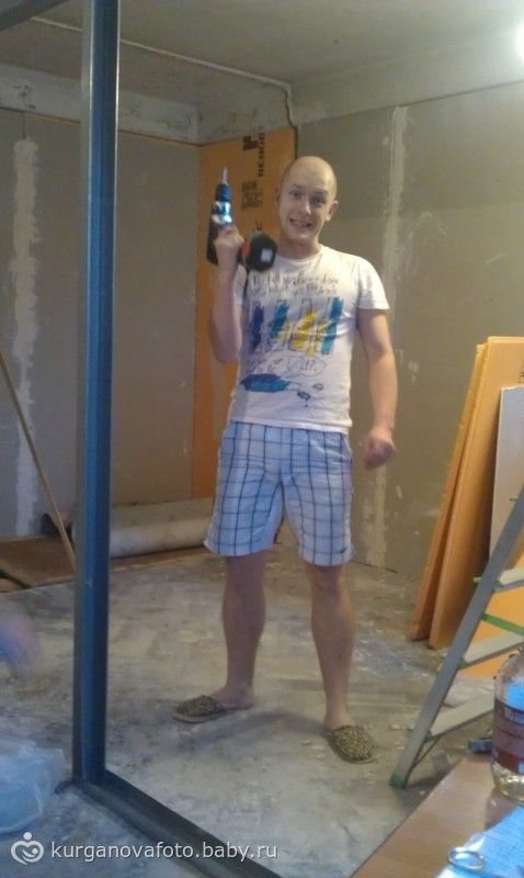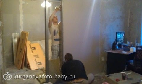 мы наконец продолжили делать ремонт! решили, что как бы не было у нас сейчас сложно со временем и финансами, но до нового года мы должны доделать сан узел и маленькую комнату! в общем, сегодня к нам пришел друг, и они вдвоем с моим Капитаном начали возводить стенку между комнатами, ну и конечно стенку в мою гардеробную)