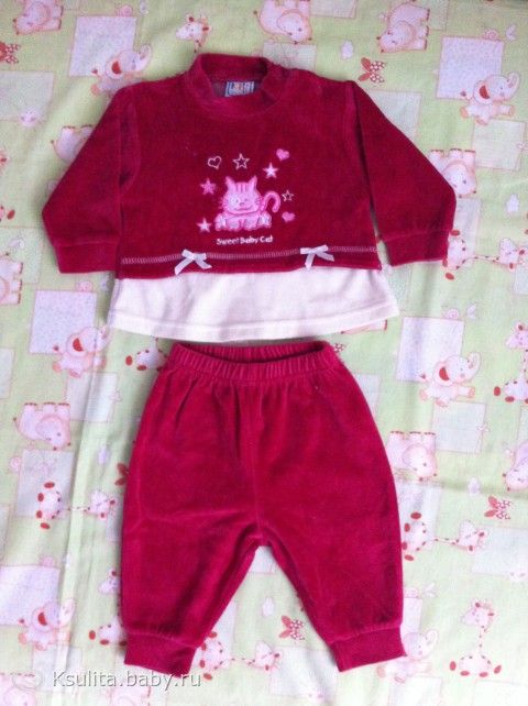 Велюр. Размер 62 (в реале до 68, кофта — до 74)