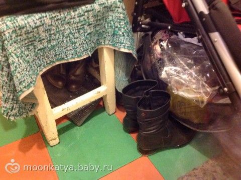 Когда коляску вытаскиваю вечно переставляю обувь, вот она и раскидывается. После.