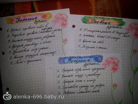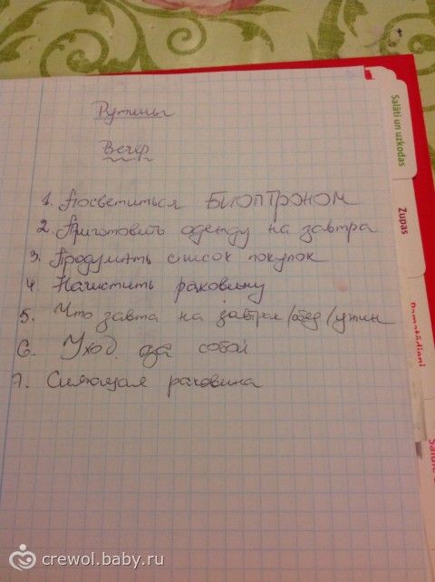 1. Берем наши Контрольные Журналы и набрасываем утренние и вечерние рутины. Пока можно карандашом, потому что в рутинах могут происходить изменения. Оставьте между утром и вечером место или запишите на разных листах, потому что рутины будут дополняться. Записав рутины, не ленитесь их выполнять!