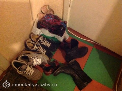 Когда коляску вытаскиваю вечно переставляю обувь, вот она и раскидывается. После.
