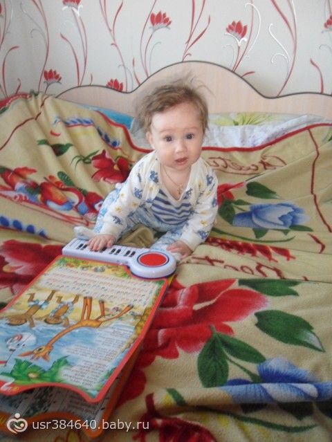 Ура прям не верится не ужели уже большой и скоро наш первый новый год с детским смехам! Ура! мы умеем сидеть(правда не долго падаем, пьём сок и едим кашу, но пока на г.в) стоим в кроватке и гулим, говарим ба, на, каля, лала, так здорово выходит)))) вообщем девочки это счастья!!!!