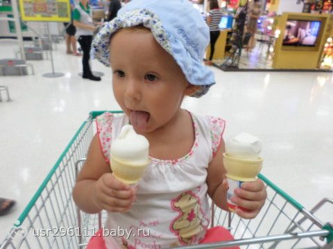 Потом в теско… Лерка лопает свое мороженное, и держит мое, пока я фоткаю ))