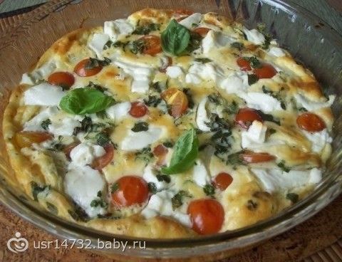 Цуккини кружочками и лук слегка обжарить на сковородке, до небольшого румянца. Выложить в форму для запекания. Сверху положить нарезанные пополам помидорки черри, крупно накрошенную фету, нарезанные листья базилика и орегано.