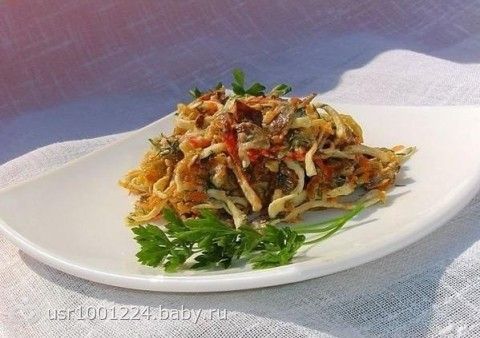 Приготовление: Вкуснейший салат с жареными крабовыми палочками, они в салате хрустящие с отчётливым вкусом рыбки, с таким тонким, приятным.