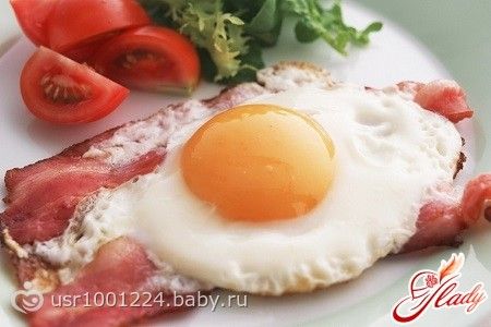 Завтрак: глазунья из 4-х яиц с ветчиной, 100 гр сыра и кофе без сахара.