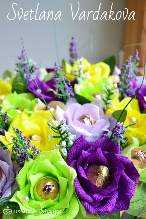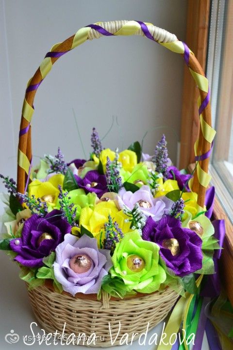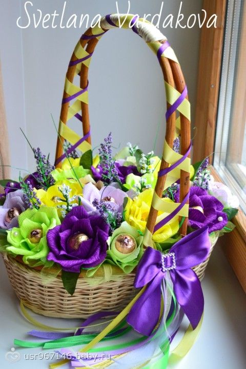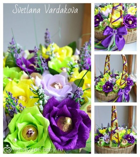 очень классные работы!!! Особенно порадовал букет из чупа-чупсов))И корзинка с киндерами))))