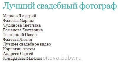Все отобранные финалисты это «Участник Клуба профессиональных свадебных фотографов MyWed». И все свыше 5 лет зарегистрированы на сайте MyWed. Я посмотрела.