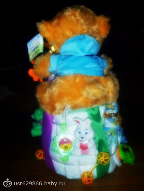 мне кажется, что обезьяна слишком крупная для этого торта. Вот размер зайчика — в самый раз. Но как игрушка, обезьяна, конечно, лучше.