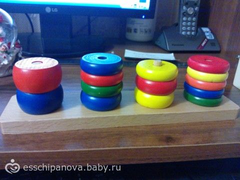 понемногу играется) даже начинает правильно фигурки раскладывать, но игры быстро надоедают 5 мин — это наш максимум))) ну вот, пока так, думаю дальше будет совершенствоваться развитие, нам ведь пока всего 1,2)
