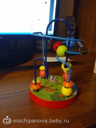 Вот такой сортерчик, деревянный.Пока мы малипуси эти блинчики я решила привесить на шнурочек и использовать вместо слингобус. К слову говоря у нас уже есть одни нехитрые бусы: шнурочек на который привешивается все что интересно.